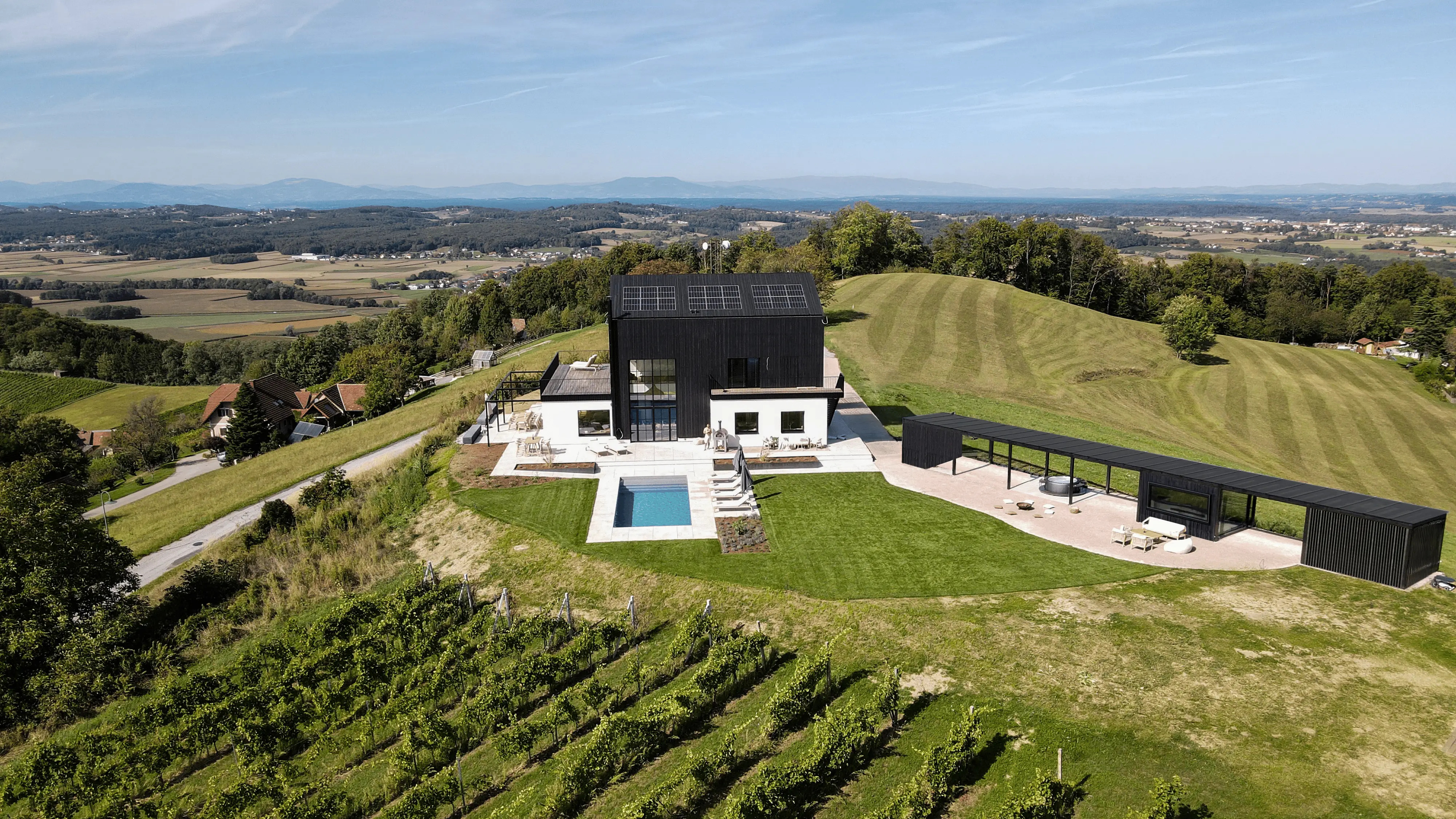 Hier tritt die Architektur in einen stillen, aber eindrucksvollen Dialog mit der Landschaft: Die Linien des Hauses folgen den Kurven der Reben, das Material spiegelt die Farben der Natur wider, und jedes Detail scheint dem Rhythmus der Umgebung zu lauschen. Die Bretterbude ist nicht neu entstanden, sondern gewachsen – saniert, aufgestockt und tief verwurzelt in dem Ort, von dem sie erzählt.