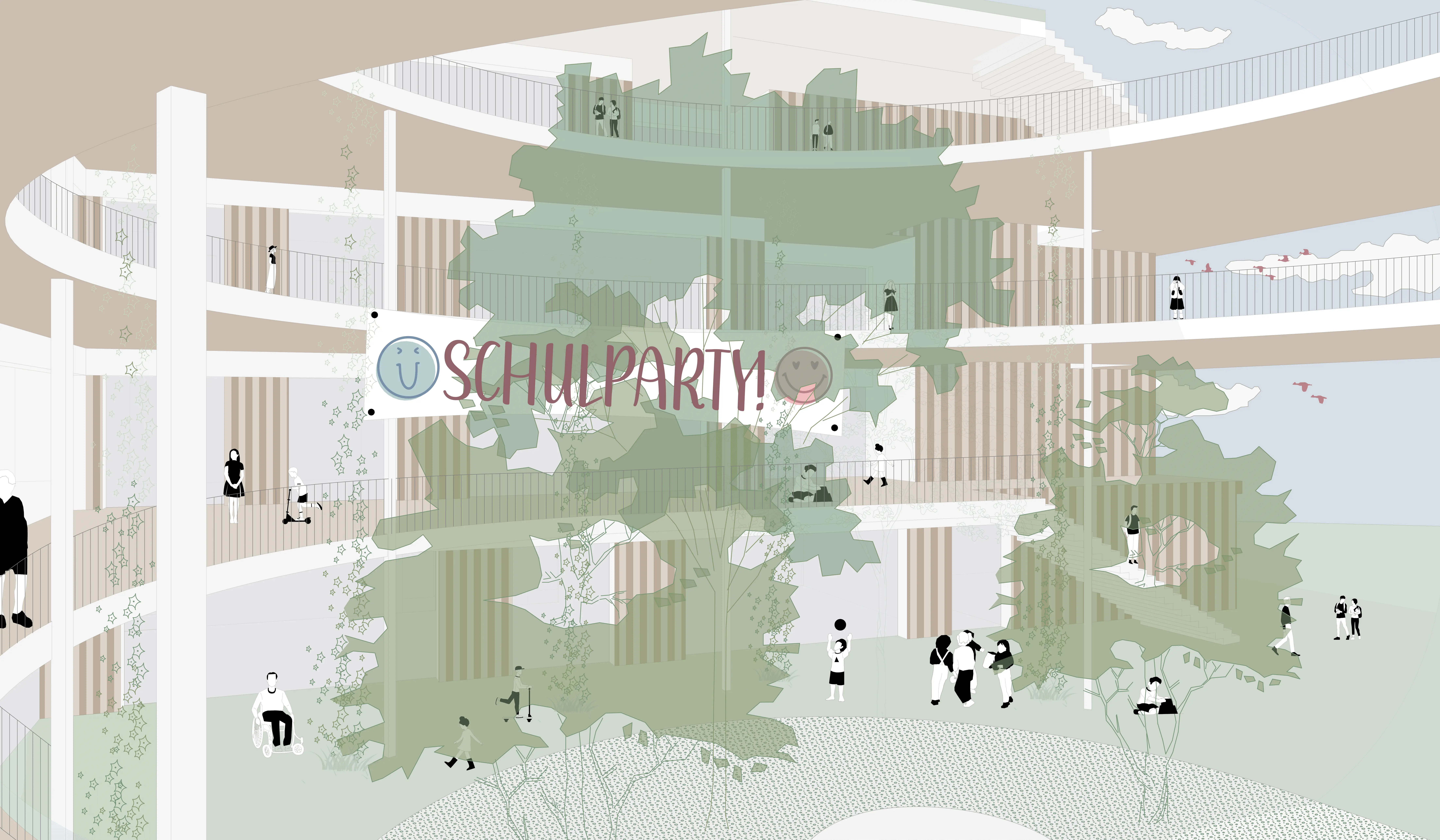 Die "OASE" ist das pulsierende Herz der Schule, ein Raum, der das Leitbild eines engen Bezugs zur Natur verkörpert. Sie ist vollständig in Holz konzipiert und wird durch begrünte Rankpflanzen belebt. Dieser zentrale Begegnungsraum mit seinem Atrium und der Haupttreppe bildet den inneren Mittelpunkt des Projekts. Die "Biber" (gemeint sind wohl Cluster oder Einheiten) sind so strukturiert, dass sie eine fließende Verbindung zum Außenraum und insbesondere zur "OASE" schaffen. Die Gestaltung dieses Raumes lädt zur Reflexion und zur Teilhabe an der Natur an.