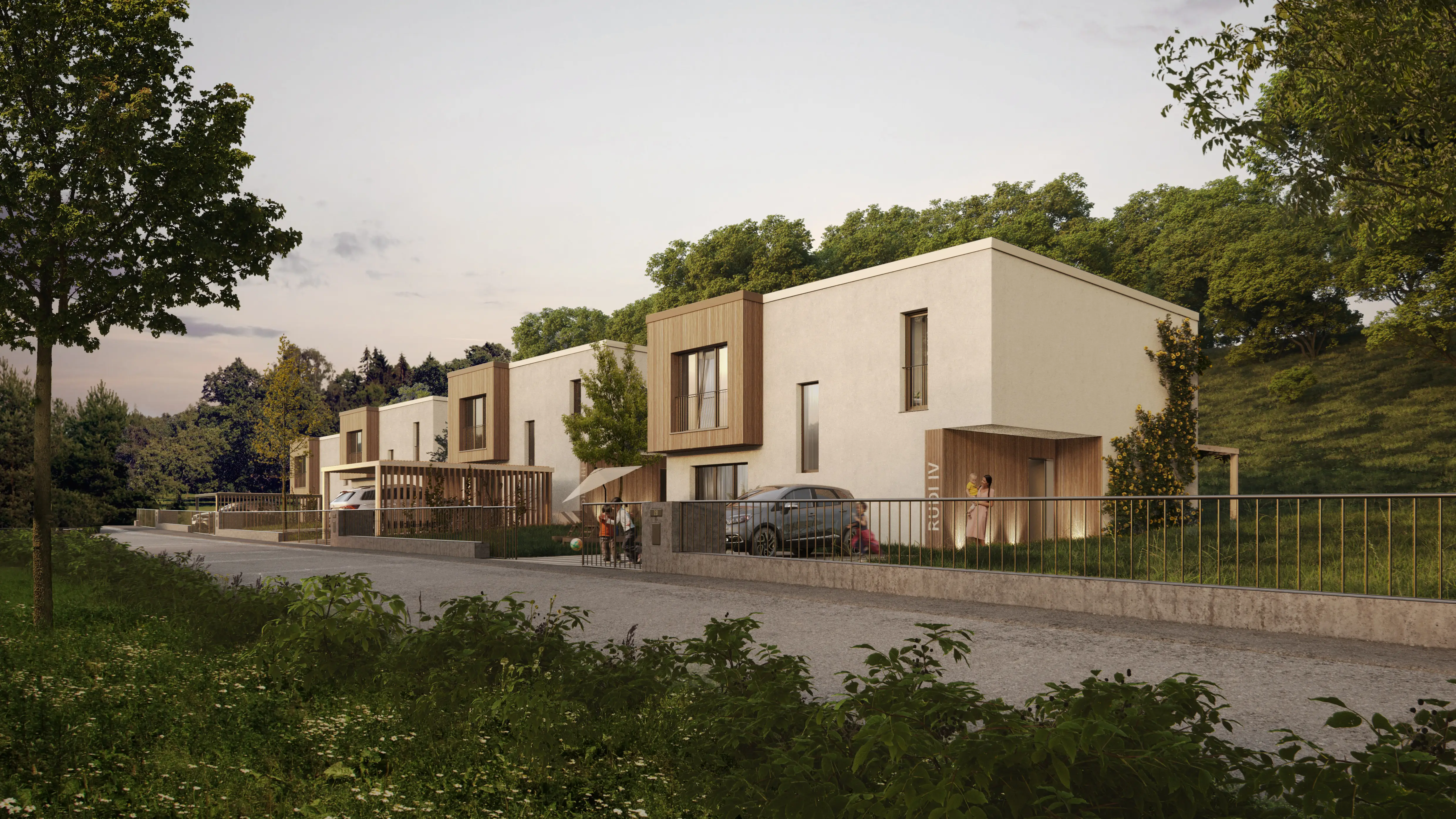 Am Eingang zur traditionsreichen Sagbergsiedlung in Purkersdorf entstehen vier präzise gesetzte Einfamilienhäuser, die durch klare Volumina, moderne Formensprache und sensible Einbettung in die topografische Struktur des Wienerwalds überzeugen. Die Architektur sucht nicht den Kontrast zur Umgebung, sondern deren Weiterführung – mit sorgfältig gesetzten Proportionen, reduzierten Materialien und einer starken Beziehung zum Außenraum.