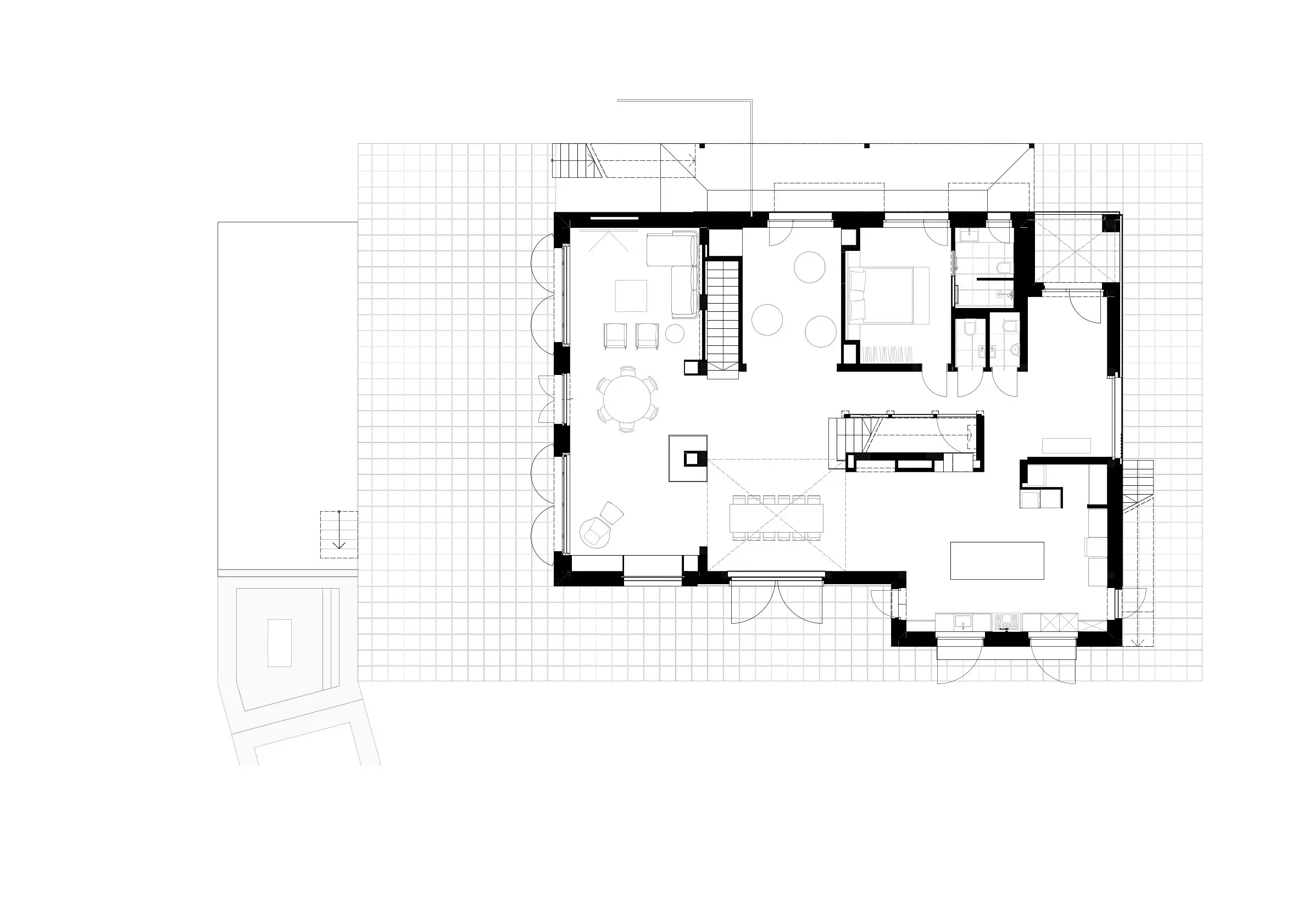 Im Inneren der Villa herrscht eine offene, luftige Atmosphäre, die durch die Schaffung großzügiger Gemeinschaftsräume verstärkt wird – Orte der Entspannung und des Miteinanders.