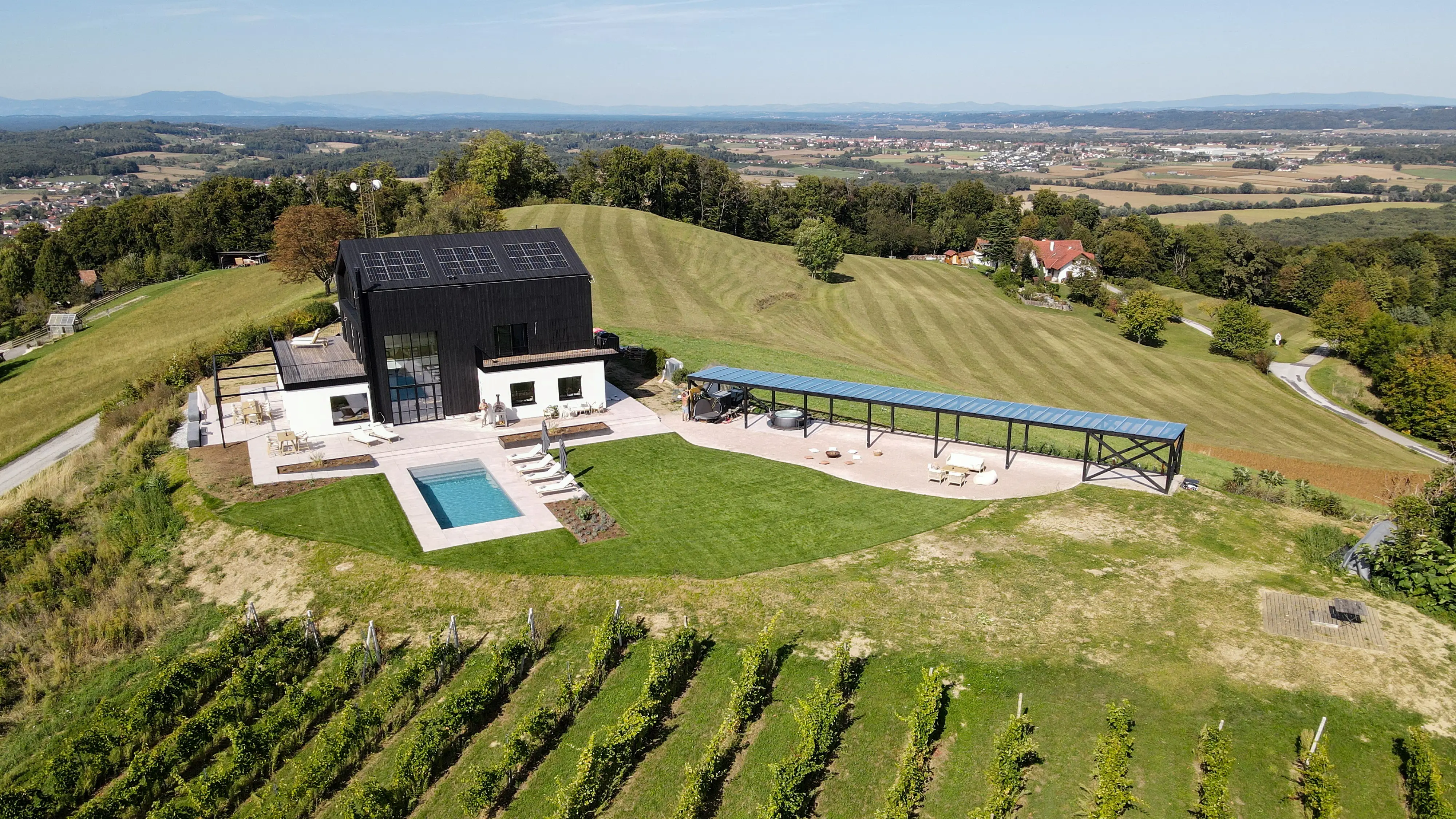 Die Sanierung und Erweiterung der Bretterbude respektieren den ursprünglichen Charakter des Gebäudes, das einst ein Gasthaus aus den 60er Jahren war. Durch die Kombination traditioneller Elemente mit moderner Architektur bleibt der Charme des Wirtshauses erhalten, während gleichzeitig neue, beeindruckende Akzente gesetzt werden. Eine Holzfassade, große Fenster und Schiebetüren öffnen das Gebäude zur Natur hin und lassen einen atemberaubenden Blick auf die umliegenden Weinberge und Hügel zu.